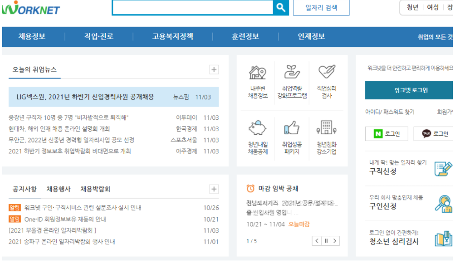 워크넷에 들어가셔서