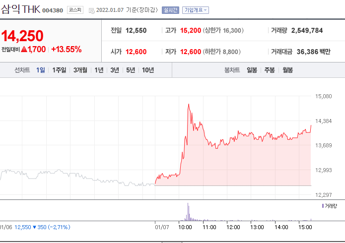 삼익THK 주가 14,250원으로 마감이 되었습니다.