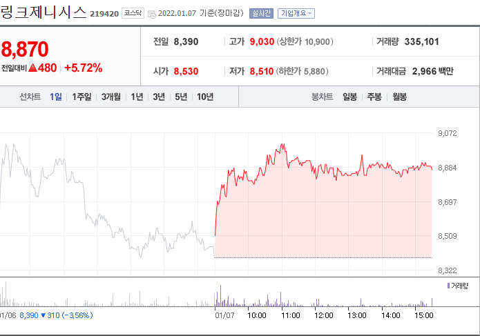 링크제니시스 시가총액은 1,017억원입니다. 발행주식수는 11,469,507주입니다.