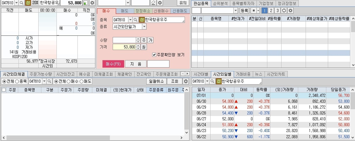 한국항공우주 시간외단일가 매매동향입니다.