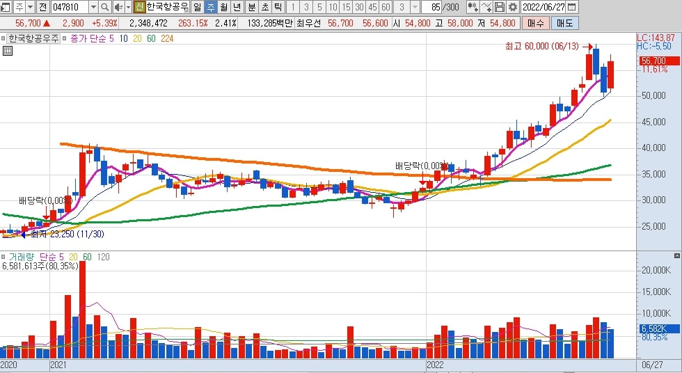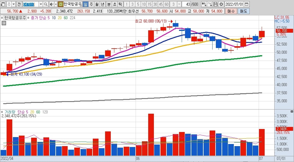 추가 상승세가 나타나면서 한국항공우주 최고가 60,000원대도 뚫고 상승할 가능성이 매우 높으며