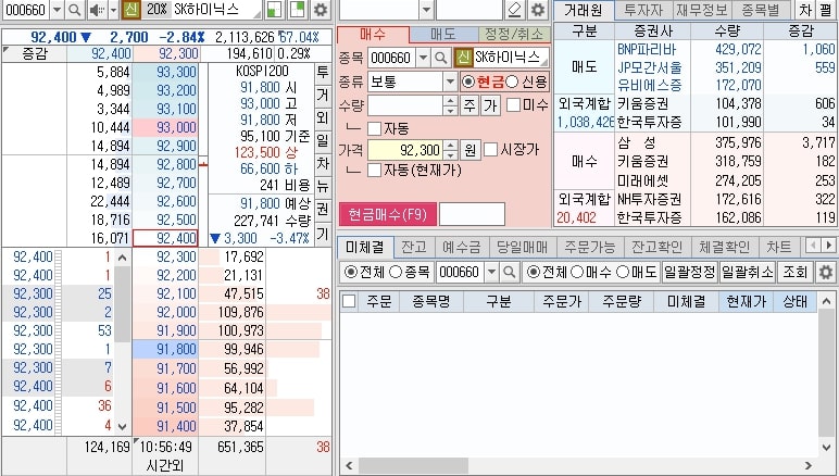 SK하이닉스 주가 92,300원의 주식 시세를 형성하면서