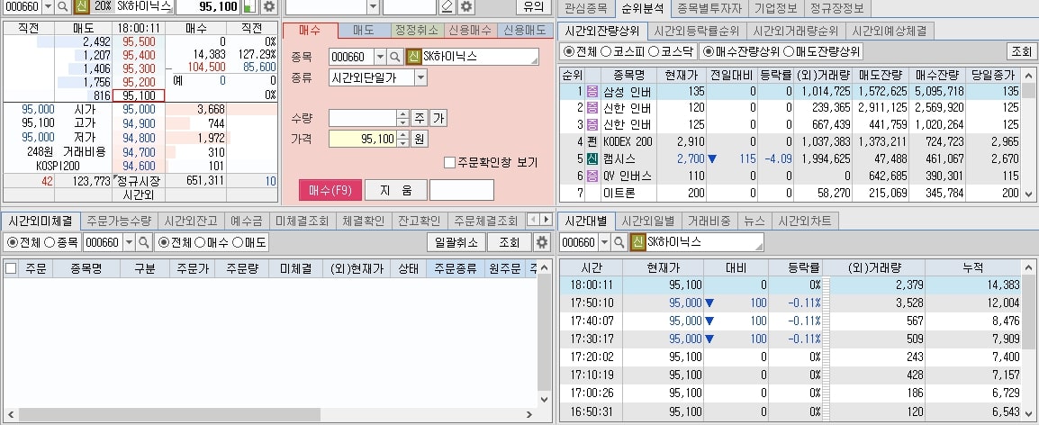 SK하이닉스 시간외단일가에서는 별 의미가 없었지만,