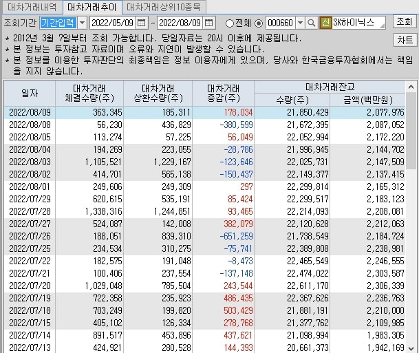 SK하이닉스 대차거래 증가가 나타나고 있습니다.