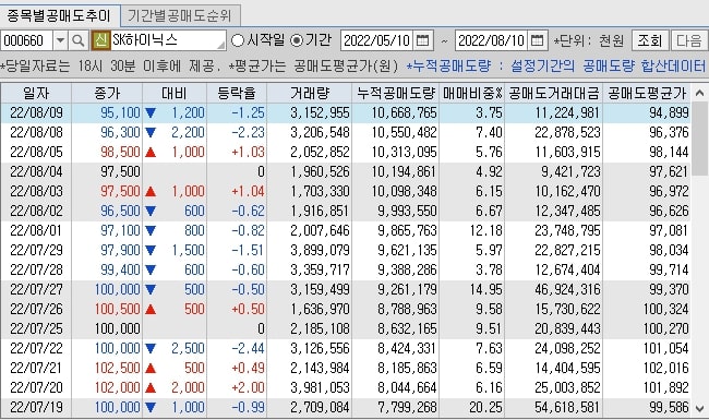 SK하이닉스 공매도거래대금 증가도 나타나고 있기에 지금에서는