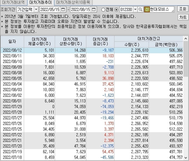 현대모비스 대차거래 추이 입니다.