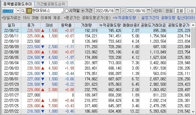 아마도 현대모비스 주가 상승세가 급등이 나타난게 아니기에 공매도 거래대금 감소가